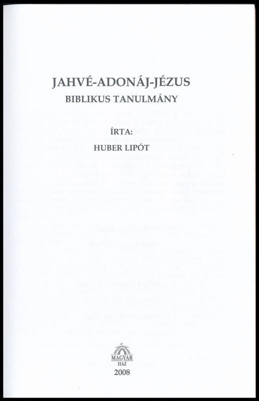 Huber Lipót: Jahvé-Adonáj-Jézus. Biblikus tanulmány. Hasonmás kiadás. ... https://www.darabanth.com/de/385-Fernauktion/385.0/Bucher/Bucher-Religion~1000048/Huber-Lipot-Jahve-Adonaj-Jezus-Biblikus-tanulmany-Hasonmas-kiadas-Hn-2008-Magyar-Ha~II2302592