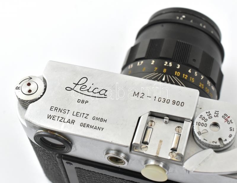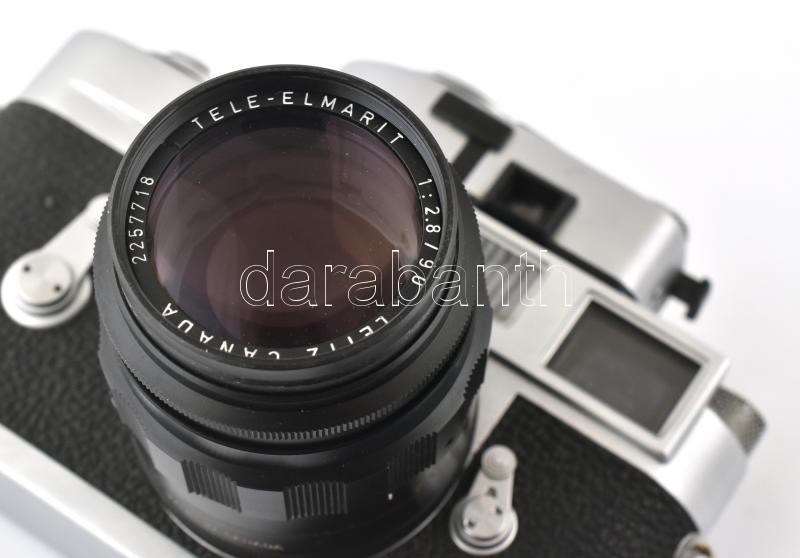 1967 Ernst Leitz Wetzlar Leica M2 35mm fényképezőgép Leitz Tele-Elmarit 1:2,5/90 objektívvel, Leica-Meter MR. fénymérővel. Működő, nagyon jó állapotban, minimális kopással. Sorozatszám: / Ernst Leitz Wetzlar Leica M2 camera with Leitz Tele-Elmarit 1:2,5/90 optics, with Leica-Meter photometer. In good condition.