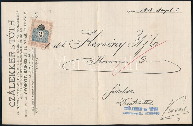 1906 Győr, Czálekker és Tóth Vas-, Ércmű stb. fejléces számlája okmány... https://www.darabanth.com/de/385-Fernauktion/385.0/Kunst-Dokumente-andere-Sammelgebiete/Dokument~1000017/1906-Gyor-Czalekker-es-Toth-Vas-Ercmu-stb-fejleces-szamlaja-okmanybelyeggel~II2301160