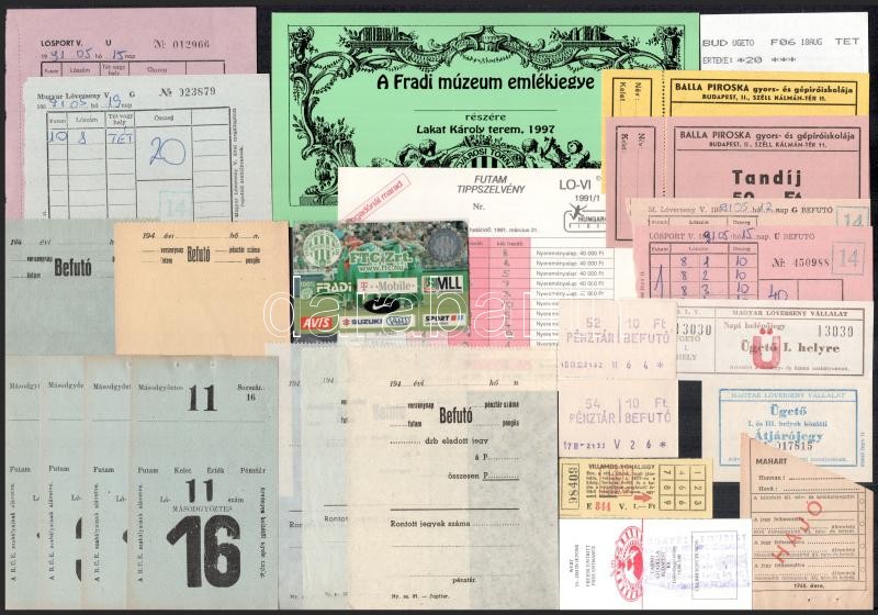Beschreibung: Vegyes jegy tétel (Fradi, lóverseny, stb.), 25 db