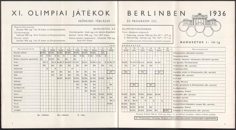 1936 Berlin, Brochure of the Berlin Olympics in Hungarian, 19p