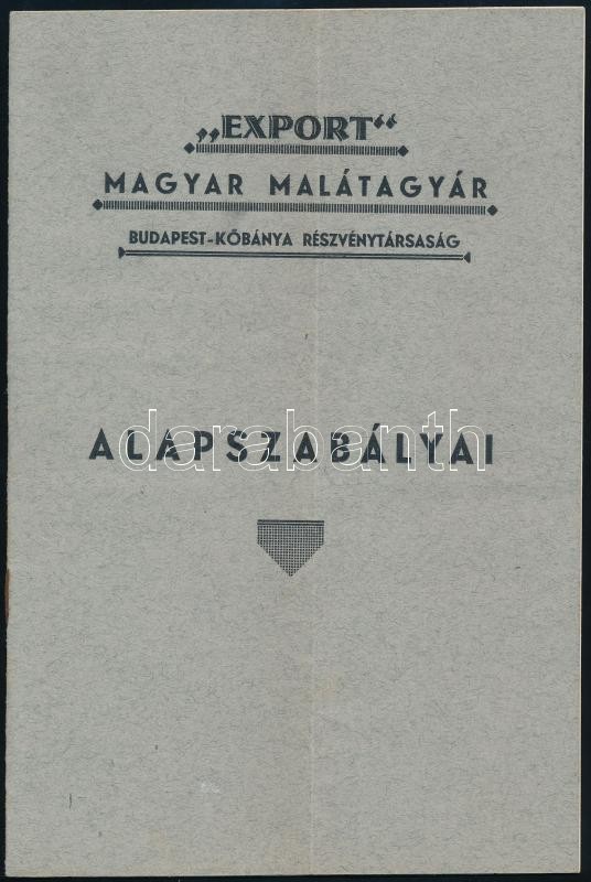 1939 "Export" Magyar Malátagyár Budapest-Kőbánya Részvénytársaság alap... https://www.darabanth.com/de/385-Fernauktion/385.0/Kunst-Dokumente-andere-Sammelgebiete/Drucksachen~1000031/1939-Export-Magyar-Malatagyar-Budapest-Kobanya-Reszvenytarsasag-alapszabalyai-hajtott-8~II2301112