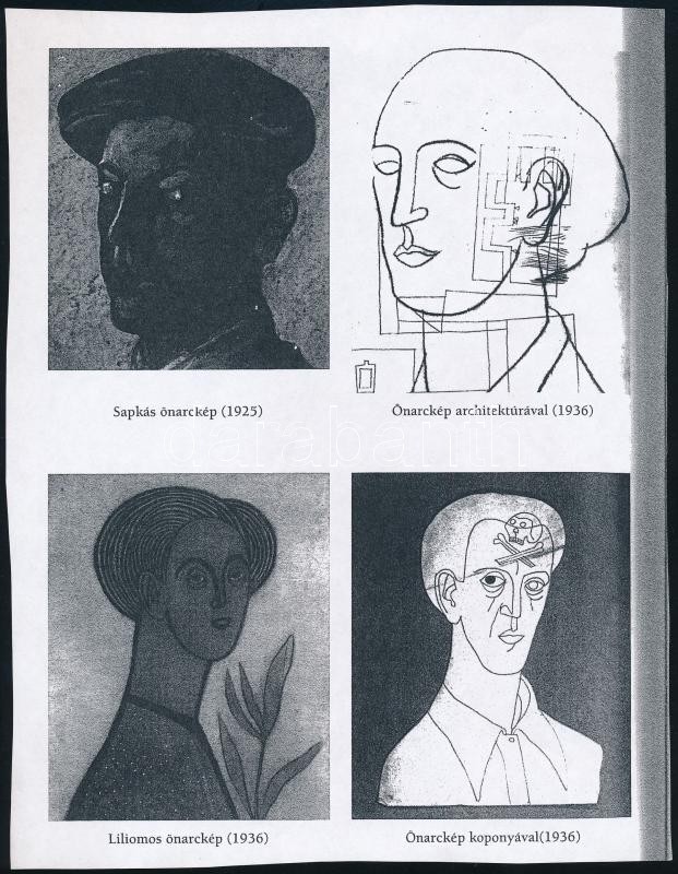 Vajda Lajos (1908-1941): Önarckép. Ofszet nyomat, papír. Lap felső része papírra kasírozva. 18x13 cm. + Egy fénymásolt lap 4 db Vajda Aljso önarcképpel