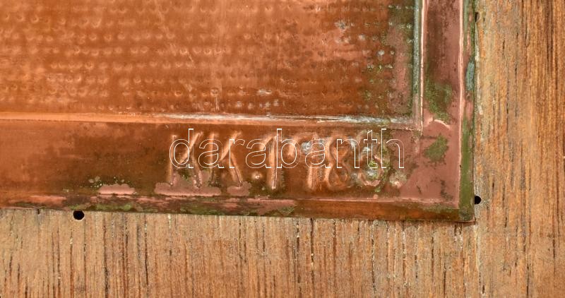 Beschreibung: Csilagos égboltot vizsgáló fiút ábrázoló réz falikép, fa hordozón, KK 1983 jelzéssel, kopott, 35,5x30 cm