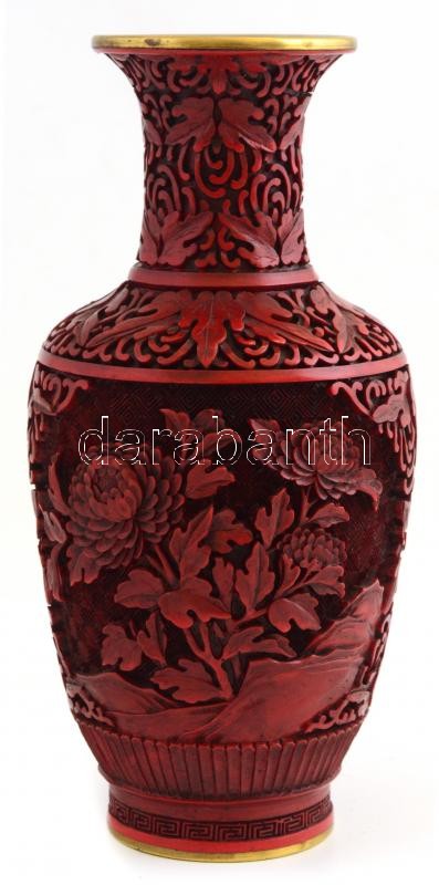 Kínai vörös lakkfaragásos zománcozott réz váza, florális ornamentikáva... https://www.darabanth.com/de/385-Fernauktion/385.0/Kunst-Dokumente-andere-Sammelgebiete/Flohmarkt~1000009/Kinai-voros-lakkfaragasos-zomancozott-rez-vaza-floralis-ornamentikaval-diszitett-jelze~II2303024
