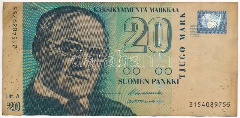 Krause P#122 https://www.darabanth.com/de/385-Fernauktion/385.0/Numismatik/Weltweit-Banknoten~2000014/Finnorszag-1993-20M-TIII-Finland-1993-20-Markkaa-CF-Krause-P23122~II2303270