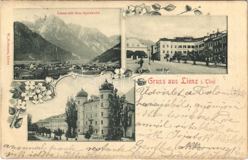 1900 Lienz i. Tirol, Spitzkofel, Stadtplatz, Hotel Post. Art Nouveau, ... https://www.darabanth.com/de/386-Fernauktion/386.0/Ansichtskarten/Osterreich~1500017/1900-Lienz-i-Tirol-Spitzkofel-Stadtplatz-Hotel-Post-Art-Nouveau-floral~II2310650