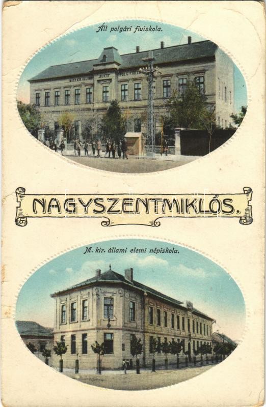 1917 Nagyszentmiklós, Sannicolau Mare; Áll. polgári fiúiskola,m. kir. ... https://www.darabanth.com/de/386-Fernauktion/386.0/Ansichtskarten/Siebenburgen~1500006/1917-Nagyszentmiklos-Sannicolau-Mare-All-polgari-fiuiskola-m-kir-allami-elemi-nepiskola-~II2314277