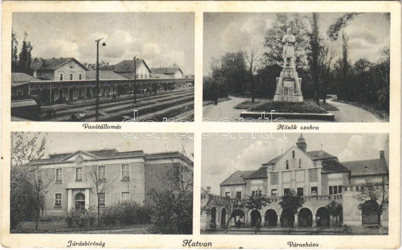 Beschreibung: 1935 Hatvan, Vasútállomás, Hősök szobra, emlékmű, Városháza, Járásbíróság (fl)