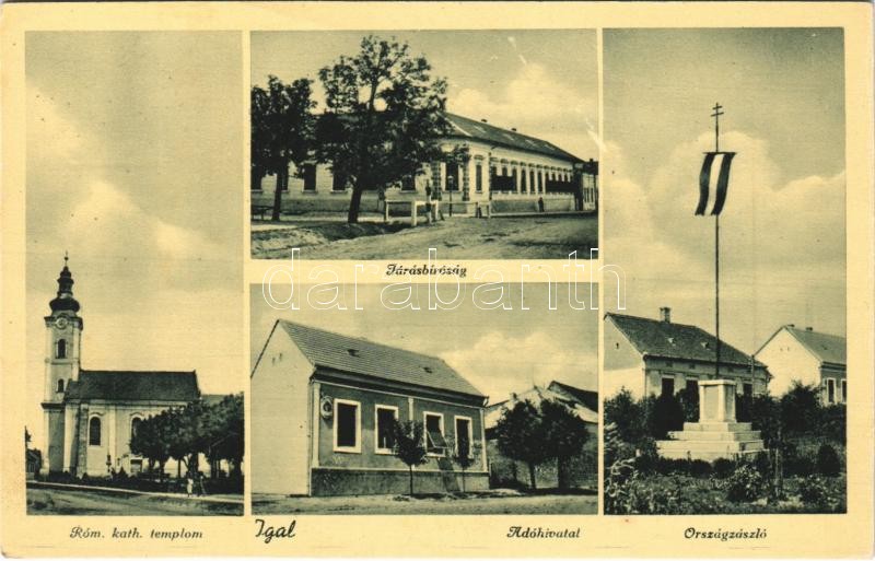 1943 Igal, Járásbíróság, Római katolikus templom, Adóhivatal, Országzá... https://www.darabanth.com/de/386-Fernauktion/386.0/Ansichtskarten/Ungarn~1500005/1943-Igal-Jarasbirosag-Romai-katolikus-templom-Adohivatal-Orszagzaszlo~II2313494