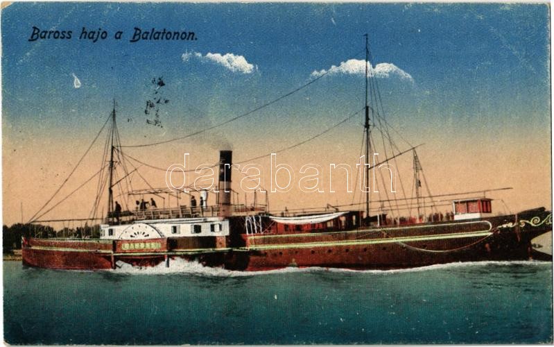 Balaton, Baross gőzös, gőzhajó a Balatonon https://www.darabanth.com/de/386-Fernauktion/386.0/Ansichtskarten/Ungarn~1500005/Balaton-Baross-gozos-gozhajo-a-Balatonon~II2146130
