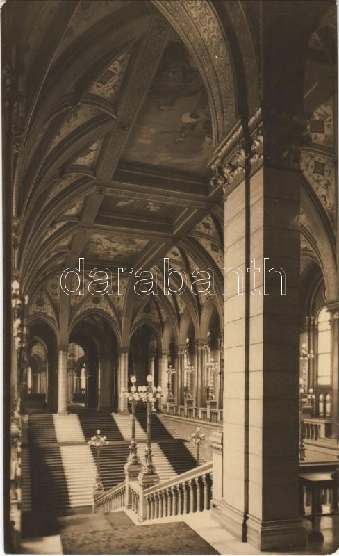 Budapest V. Országház, belső, díszlépcső https://www.darabanth.com/de/386-Fernauktion/386.0/Ansichtskarten/Ungarn~1500005/Budapest-V-Orszaghaz-belso-diszlepcso~II2313355