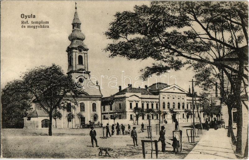 Gyula, Református templom és megyeháza. Kiadja a Leopold nyomda (EK) https://www.darabanth.com/de/386-Fernauktion/386.0/Ansichtskarten/Ungarn~1500005/Gyula-Reformatus-templom-es-megyehaza-Kiadja-a-Leopold-nyomda-EK~II1965394