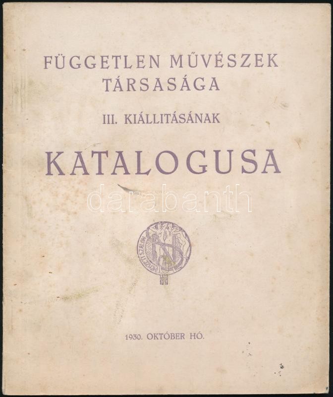 Független Művészek Társasága III. kiállításának katalogusa. 1930. október. Bp., 1930,(Vészi-ny.) 26 p.+23 t. Kiadói papírkötés. Fekete-fehér képekkel illusztrált katalógus, többe közt Kunffy Lajos, Viski János, Náray Aurél, László Fülöp, gróf Andrássy Géza és más művészek alkotásainak reprodukcióival. Kiadói papírkötés, kissé kopott borítóval.