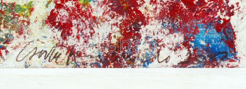 Csorba Simon László (1943-): Cím nélkül (Prézlinek szeretettel). Akril-vegyes technika, karton, hátoldalán a művész autográf feliratával. Üvegezett kerettel, 40×60 cm