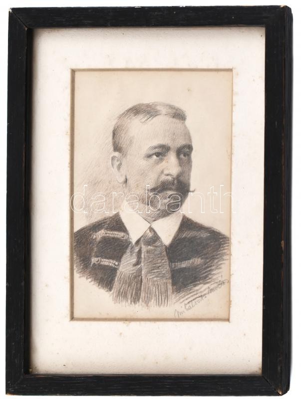 Beschreibung: Mihalovits Miklós (1888-1960): Férfi portré. Ceruza, papír, jelzett, üvegezett keretben, 14,5×10 cm