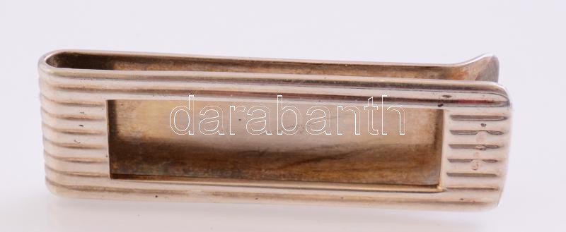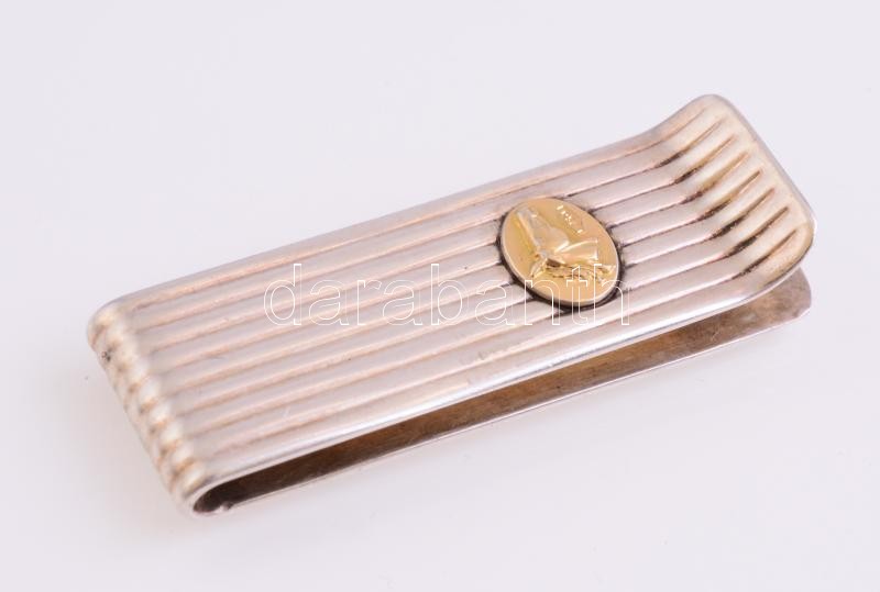 Beschreibung: Ezüst (Ag.) pénzcsipesz, jelzett, 18K aranyozott plasztkus lófej díszítéssel, jelzett, 4,5x1,5 cm, 14,59 g