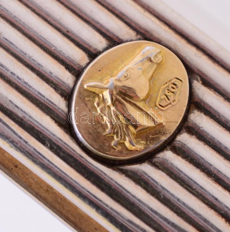 Ezüst (Ag.) pénzcsipesz, jelzett, 18K aranyozott plasztkus lófej díszí... https://www.darabanth.com/de/386-Fernauktion/386.0/Juwelen/Juwelen~1000001/Ezust-Ag-penzcsipesz-jelzett-18K-aranyozott-plasztkus-lofej-diszitessel-jelzett-4-5x1-5~II2313150