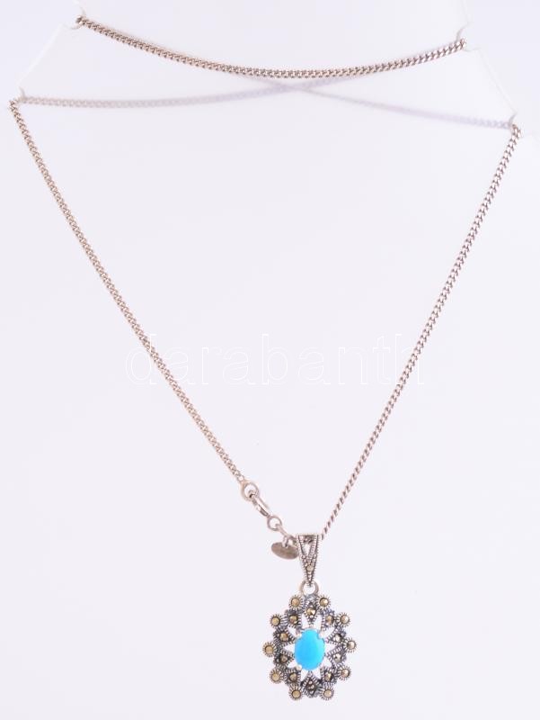 Beschreibung: Ezüst(Ag) markazitos medál, láncon, jelzett, h: 44 cm, bruttó: 9,22 g