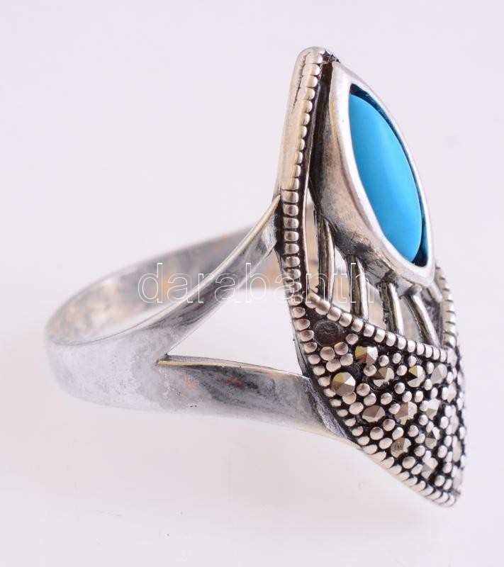 Beschreibung: Ezüst(Ag) ovális gyűrű, türkizszínű kővel, jelzett, méret: 54, bruttó: 5,24 g