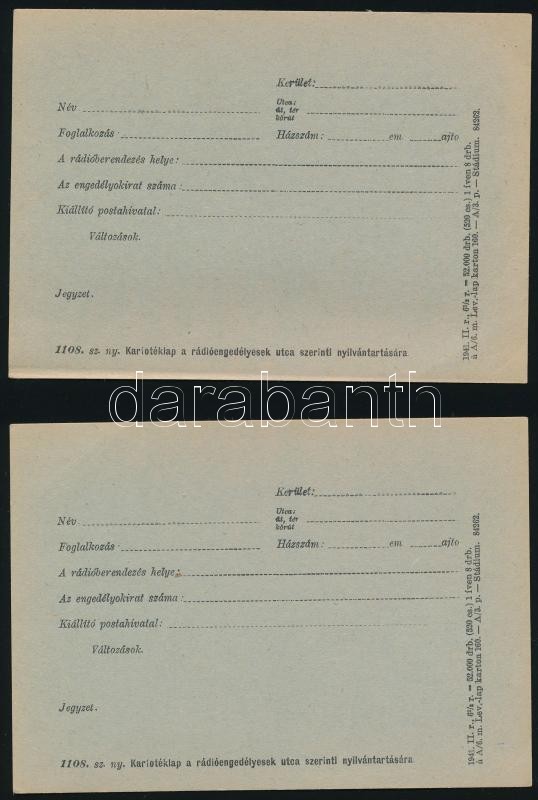 Beschreibung: 1931 Engedélyokirat rádió-vevőberendezés létesítésére és üzembentartására + 2 db kartotéklap rádióengedélyesek utca szerinti nyilvántartására
