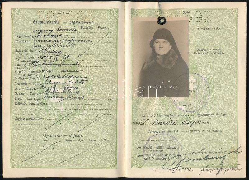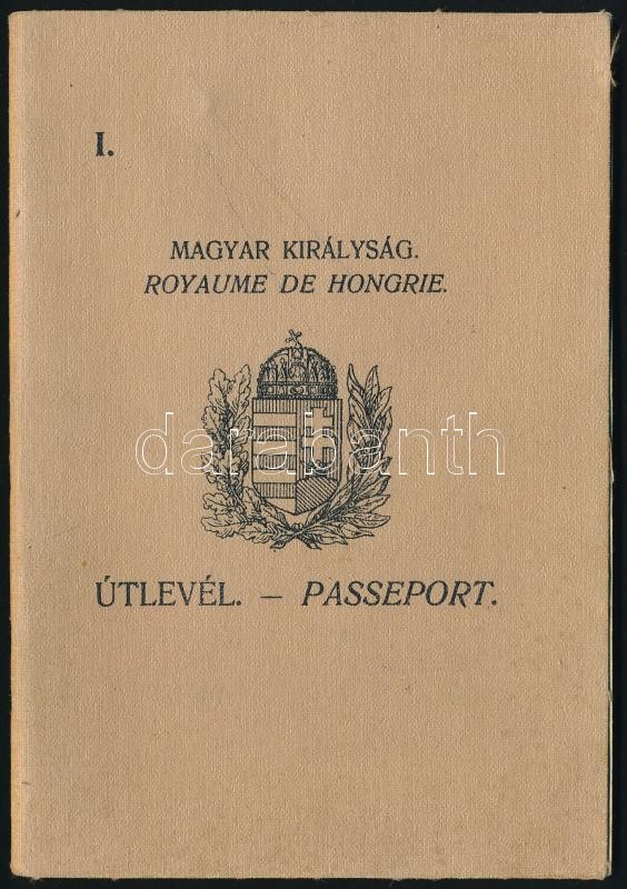 1934 Veszprém, Magyar Királyság által kiállított fényképes útlevél / H... https://www.darabanth.com/de/386-Fernauktion/386.0/Kunst-Dokumente-andere-Sammelgebiete/Dokument~500018/1934-Veszprem-Magyar-Kiralysag-altal-kiallitott-fenykepes-utlevel-Hungarian-passport~II2310028