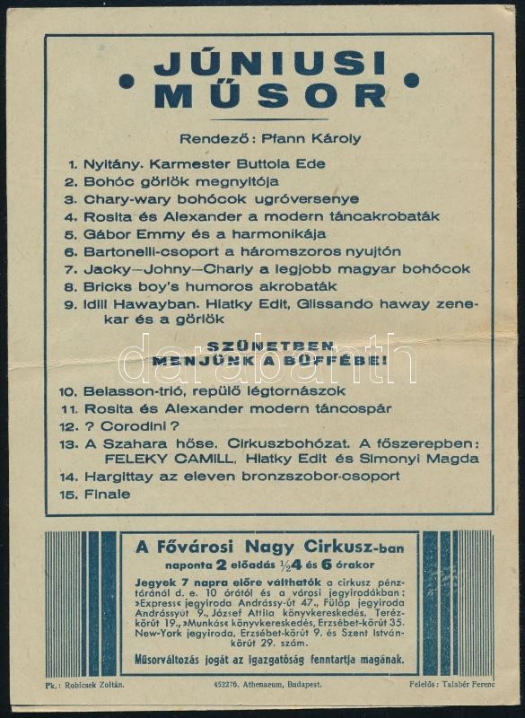 cca 1960 Cirkusz és ORI műsorfüzet 2 db https://www.darabanth.com/de/386-Fernauktion/386.0/Kunst-Dokumente-andere-Sammelgebiete/Dokument~500018/cca-1960-Cirkusz-es-ORI-musorfuzet-2-db~II2310494