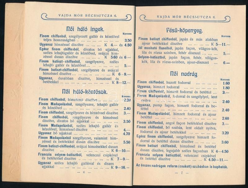 cca 1905 Vajda Mór divat és fehérnemű áruházának (Bp. Bécsi utca) árje... https://www.darabanth.com/de/386-Fernauktion/386.0/Kunst-Dokumente-andere-Sammelgebiete/Drucksachen~500031/cca-1905-Vajda-Mor-divat-es-fehernemu-aruhazanak-Bp-Becsi-utca-arjegyzeke-szecesszios~II2311741