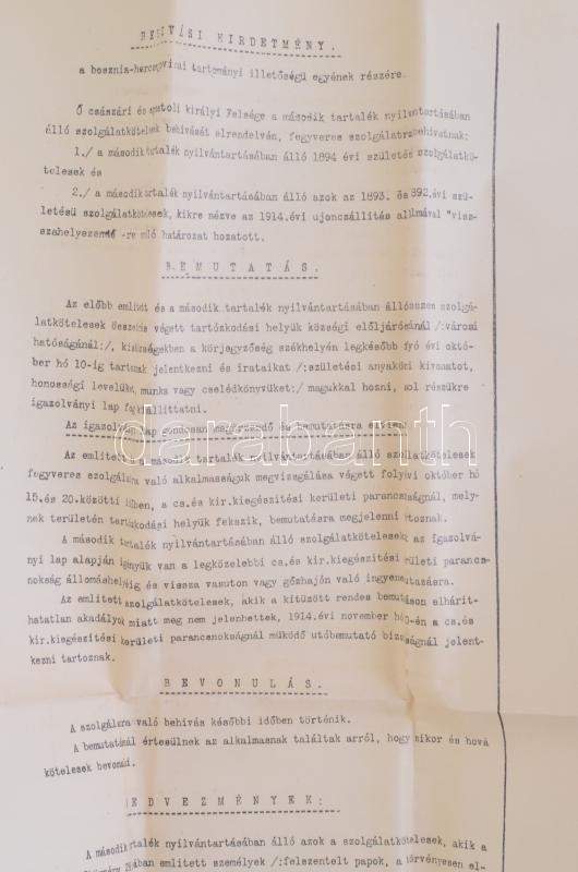 1914 Behívási hirdetmény bosznia-hgercegovinai lakosok részére három n... https://www.darabanth.com/de/386-Fernauktion/386.0/Kunst-Dokumente-andere-Sammelgebiete/Militaria~500028/1914-Behivasi-hirdetmeny-bosznia-hgercegovinai-lakosok-reszere-harom-nyelven-Drafting-announ~II2313901