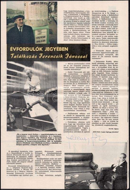 Beschreibung: Csala Zsuzsa, Lorán Lenke, Ferencsik János aláírásai a Tükör és az Ország-világ lapjain