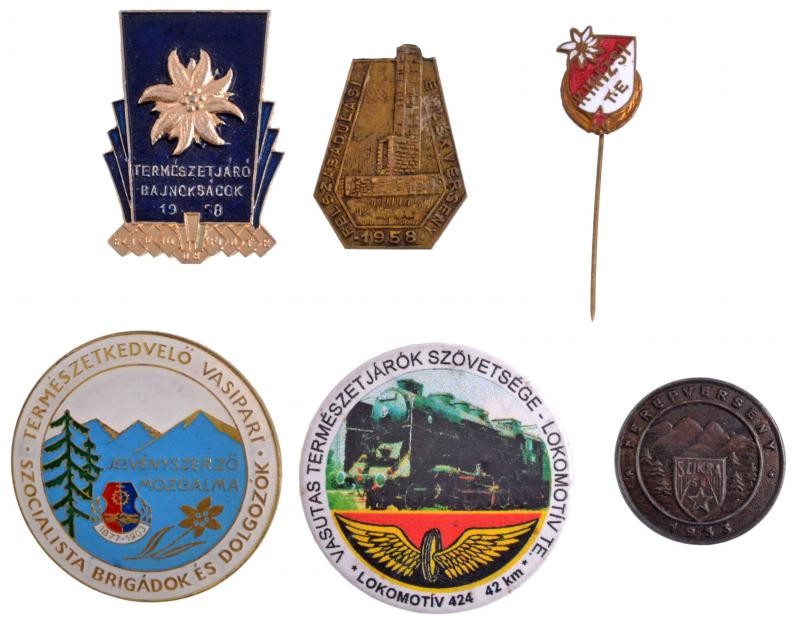 6db-os turista jelvény tétel, közte "Természetkedvelő Vasipari Szocialista Brigádok és Dolgozók - Jelvényszerző mozgalma" műgyantás jelvény T:vegyes