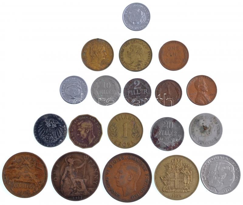 19db vegyes magyar és külföldi fémpénz, közte mexikói, amerikai, izlandi érmék T:vegyes
