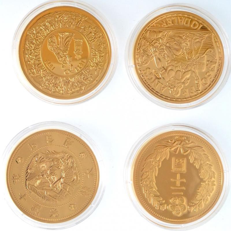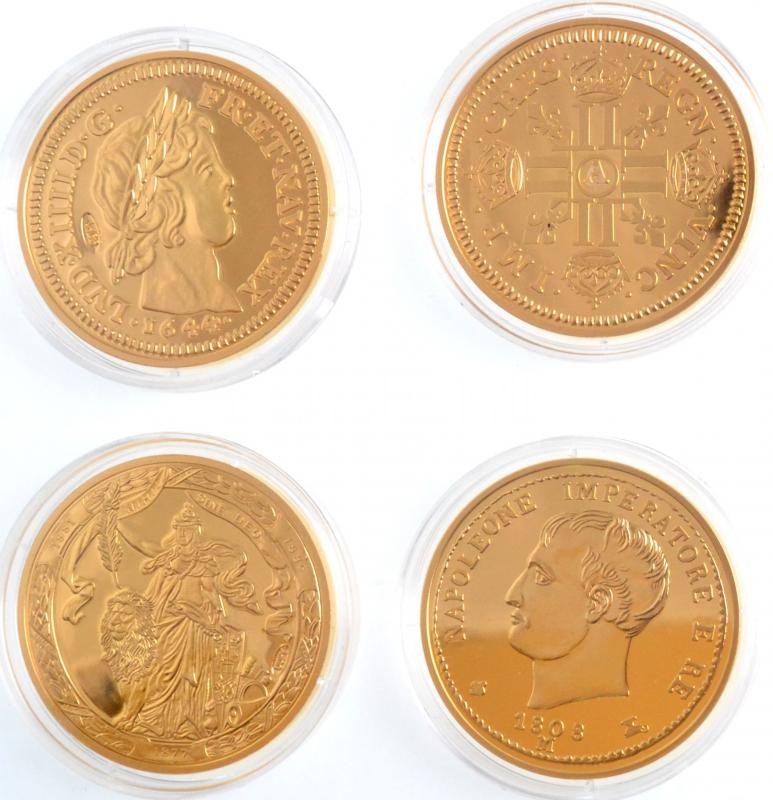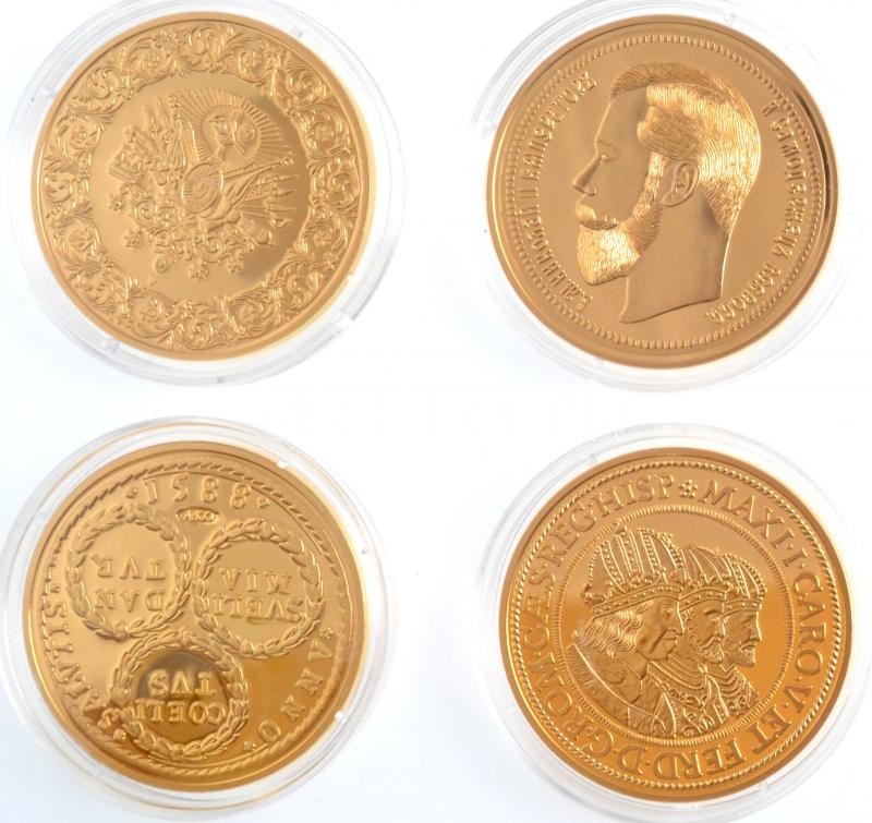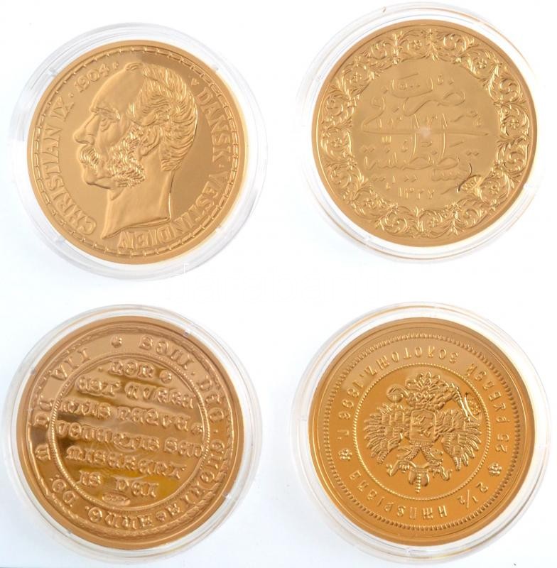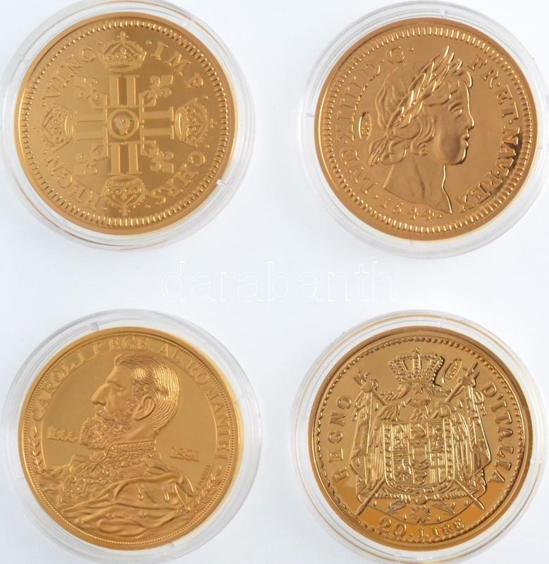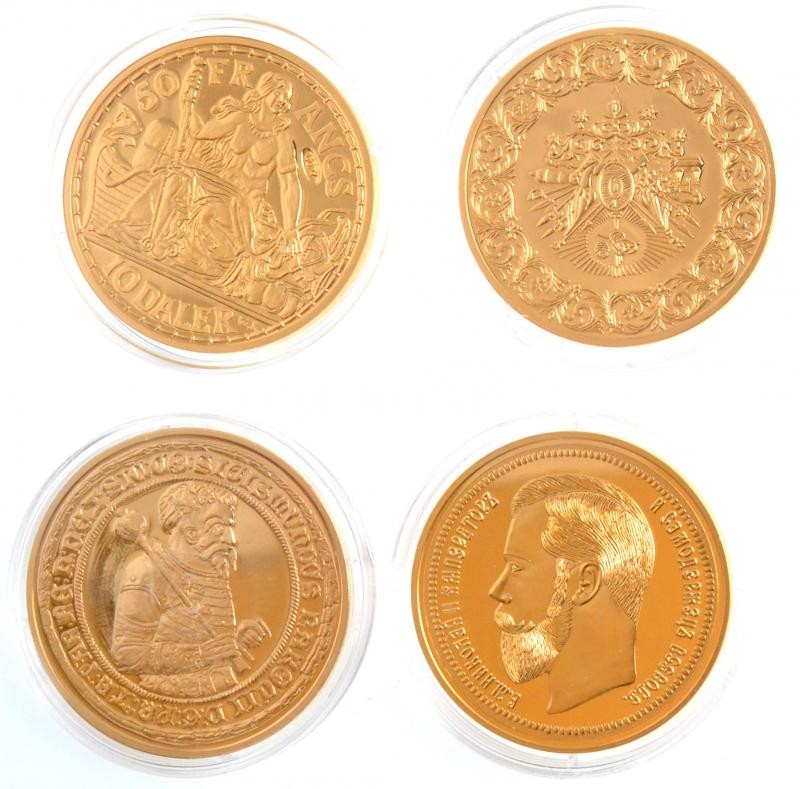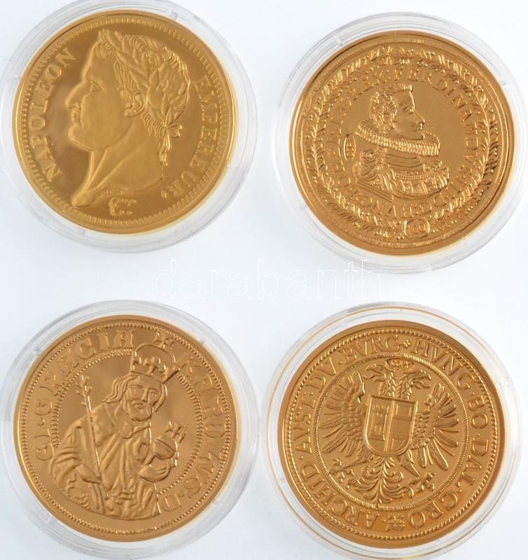 Beschreibung: 24db-os tétel a "Történelmi aranypénzek" sorozatból, aranyozott Cu-Ni utánveretek "COPY" beütéssel (20g/38,61mm) T:PP