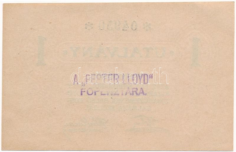 Beschreibung: Budapest ~1920. 1K "Pester Lloyd" utalvány hátoldalon bélyegezve T:I