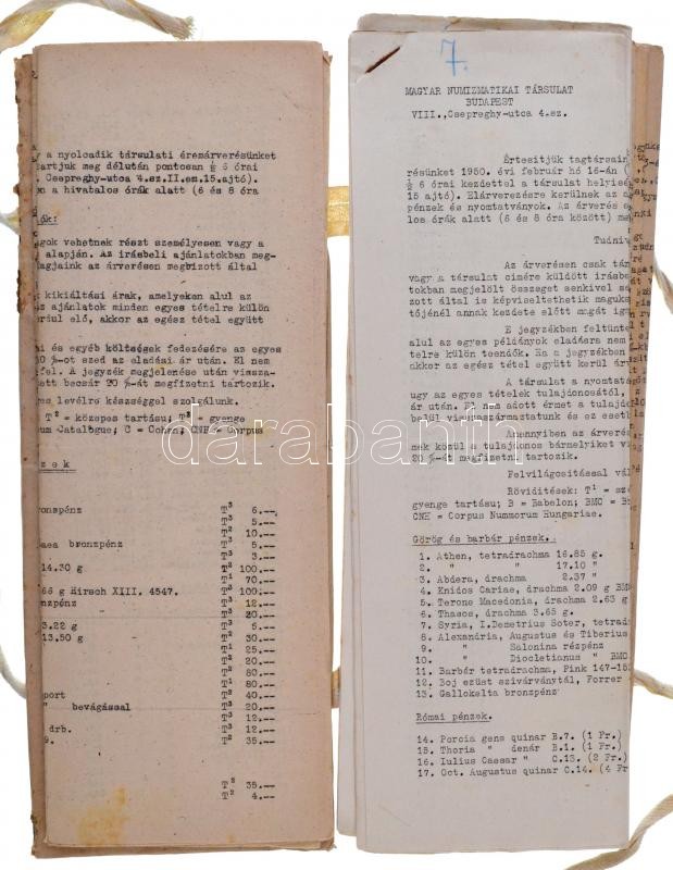 Beschreibung: 1948-1950. 8db-os A Magyar Numizmatikai Társulat árverései tételjegyzéke