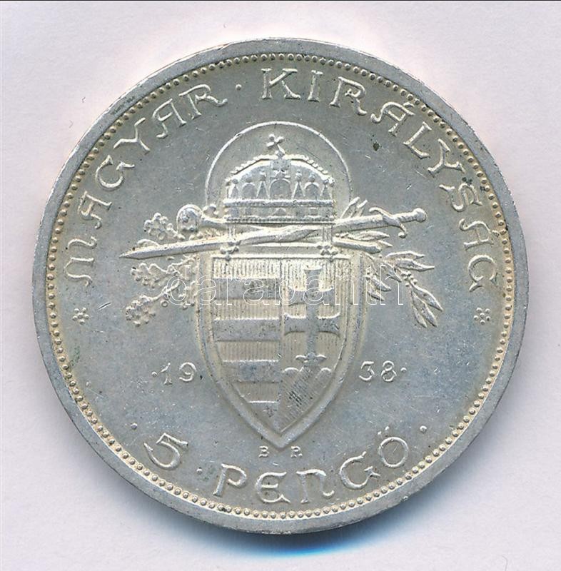 Hungary 1938. 5 Pengő Ag ... https://www.darabanth.com/de/386-Fernauktion/386.0/Numismatik/Ungarische-Munzen-und-Munzen-mit-ungarischem-Munzzeichen~2000008/1938-5P-Ag-Szent-Istvan-T1-2-Hungary-1938-5-Pengo-Ag-Saint-Stephen-CAU-XF--Adamo-P81~II2308725