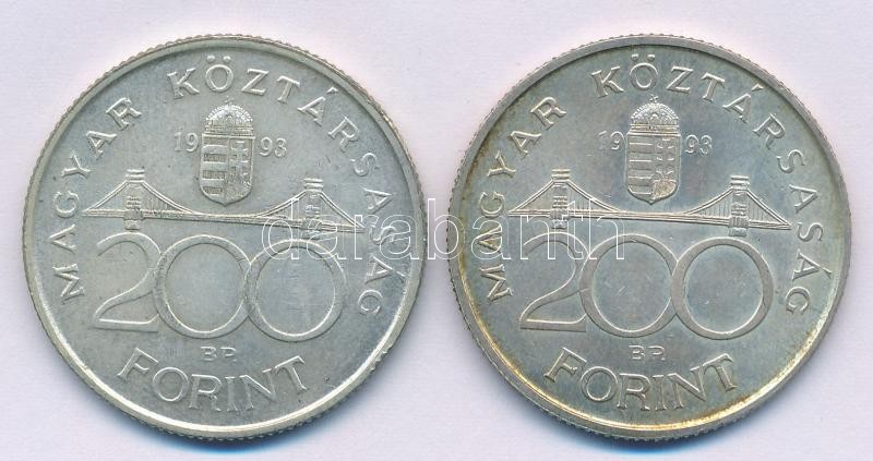 Beschreibung: 1993. 200Ft Ag "MNB" (2x) T:2 Adamo F13