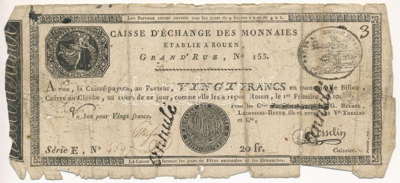 Beschreibung: Franciaország / Rouen 1797-1803. 20Fr "annulé (érvénytelen)" felülbélyegzéssel T:IV