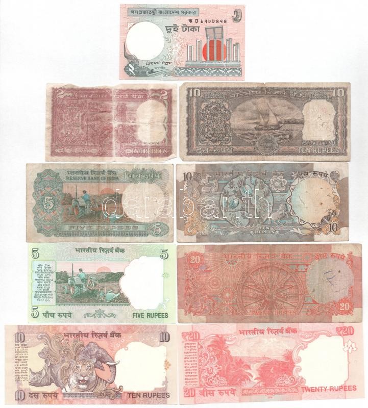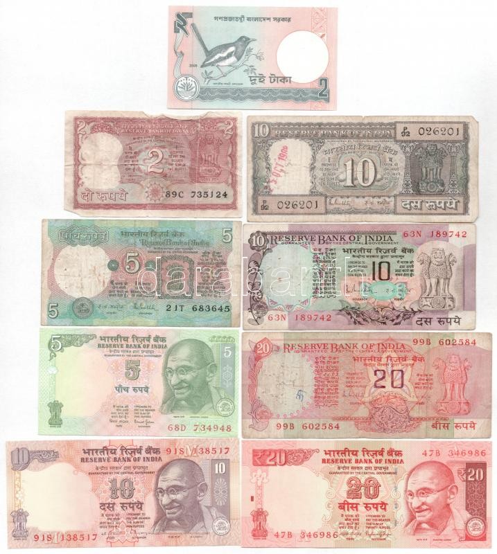 Beschreibung: India 9xklf vegyes bankjegytétel T:I-III