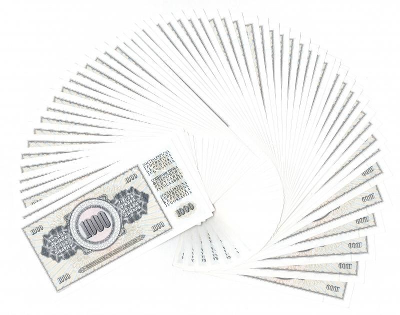 Yugoslavia 1981. 1000 Dinara (63x) sequential serials with two jumps "CU 4513999 - CU 451934" C:UNC
