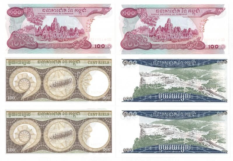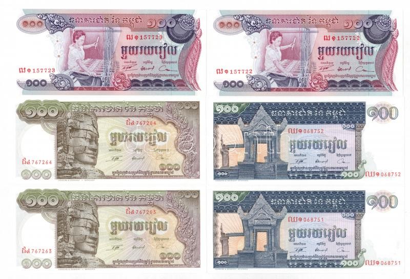 Kambodzsa 1972. 100R (2x, sorszámkövető), 1972. 100R (2x, sorszámkövető) + 1972. 100R (2x, sorszámkövető) T:I-II Cambodia 1972. 100 Riels (2x, sequential serials) + 1972. 100 Riels (2x, sequential serials) + 1972. 100 Riels (2x, sequential serials) C:UNC-XF Krause P#8c2, P#12b, P#15a