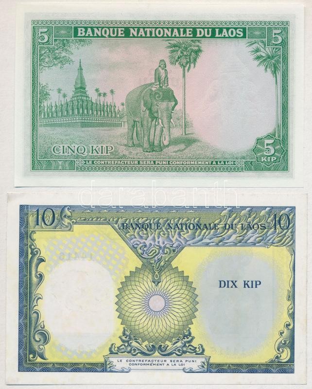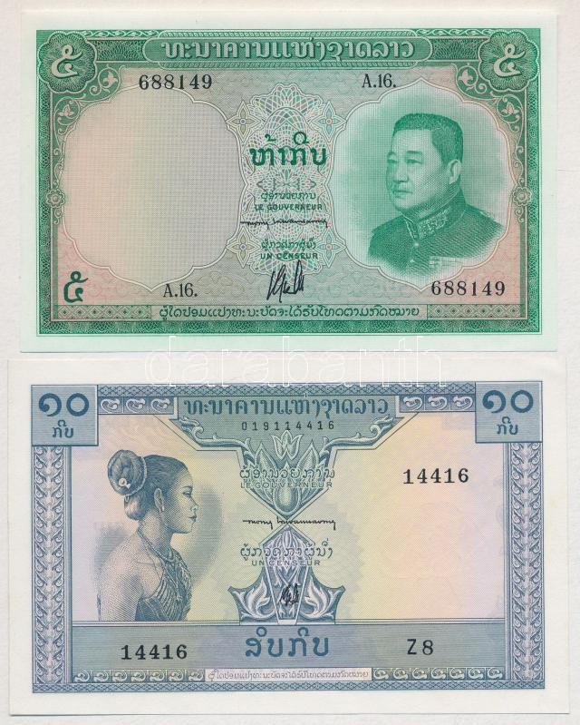 Laos 1962-1976. 5 Kip + 10 Kip C:UNC,AU