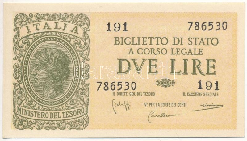 Krause P#30 https://www.darabanth.com/de/386-Fernauktion/386.0/Numismatik/Weltweit-Banknoten~2000014/Olaszorszag-1944-2L-TI-Italy-1944-2-Lire-CUNC-Krause-P2330~II2314035