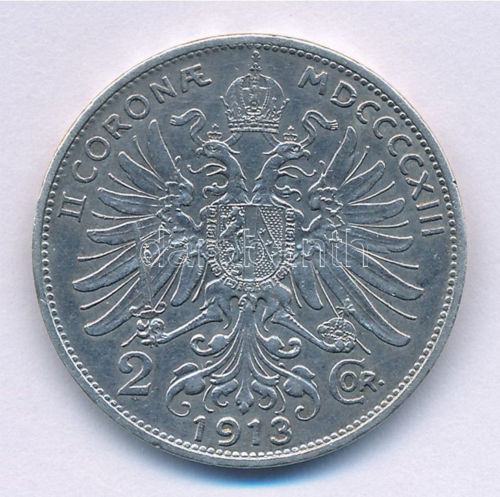 Ausztria 1913. 2K Ag "Ferenc József" T:2,2- ph. Austria 1913. 2 Corona Ag "Franz Joseph" C:XF,VF edge error Krause KM#2821