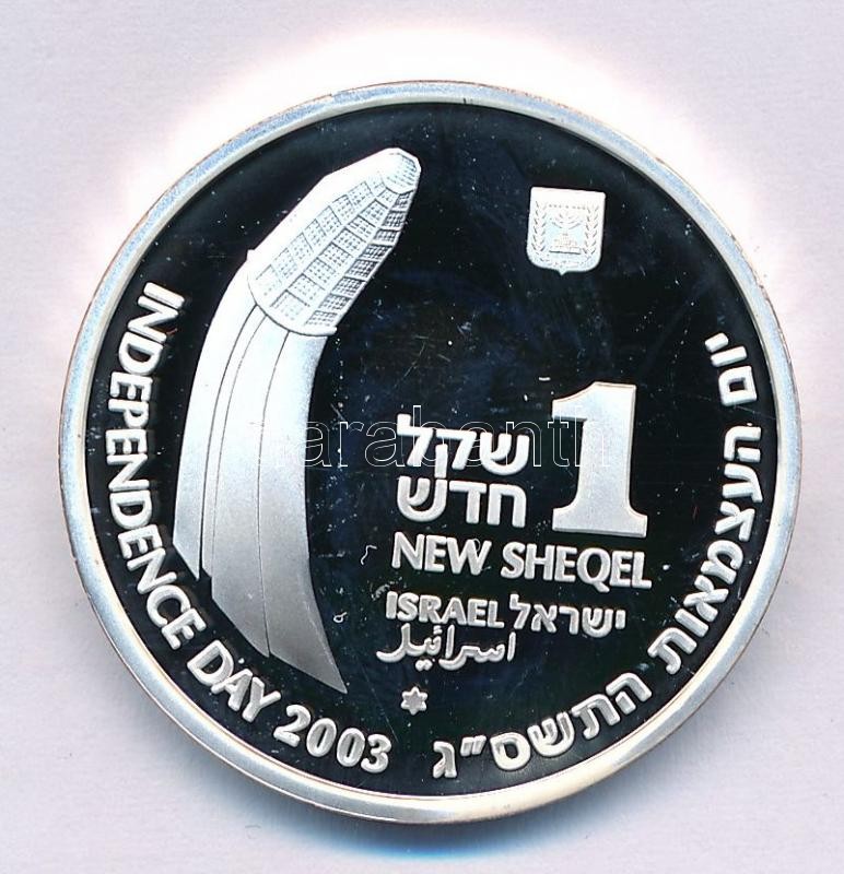 Izrael 2003. 1NS Ag "Izraeli Űrprogram / Függetlenség" tanúsítvánnyal T:PP Israel 2003. 1 New Sheqel Ag "IIndependence - Israel's Space Program" with certificate C:PP Krause KM#371