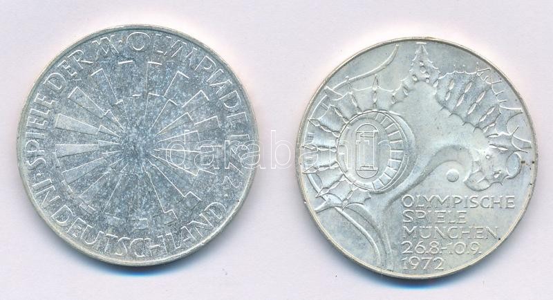 Beschreibung: NSZK 1972D 10M Ag "Müncheni Olimpia - Stadion" + 10M Ag "Müncheni Olimpia - Spirál" T:1- patina