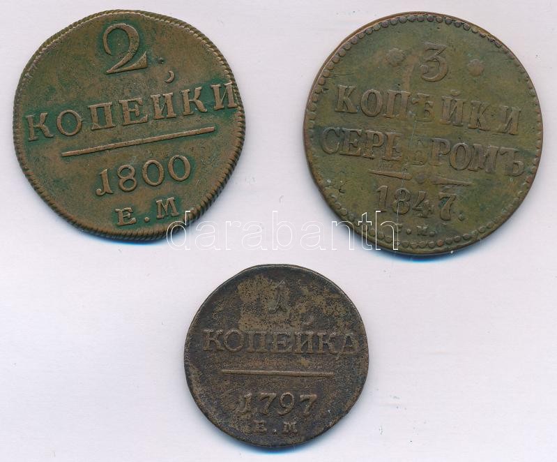 Russ... https://www.darabanth.com/de/386-Fernauktion/386.0/Numismatik/Weltweit-Munzen~2000015/Orosz-Birodalom-1797EM-1k-Br-plus-1800EM-2k-Br-plus-1847CM-3k-Br-T2-3-Russian-Empire-1797EM-1-Kopek-Br-plus~II2311542