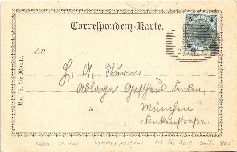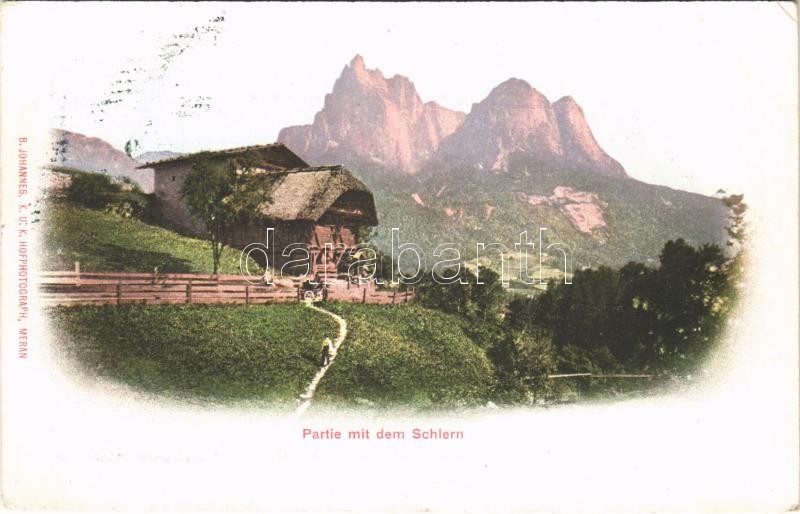 Beschreibung: Siusi allo Sciliar, Seis am Schlern (Südtirol); Partie mit dem Schlern. B. Johannes K.u.K. Hofphotograph / Sciliar / mountain (EK)