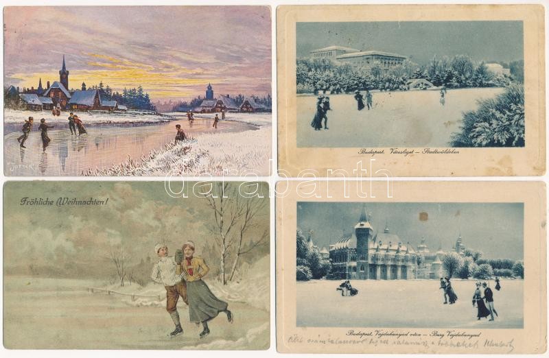Beschreibung: 6 db RÉGI téli sport motívum képeslap: jégkorcsolya / 6 pre-1945 winter sport motive postcards: ice skating