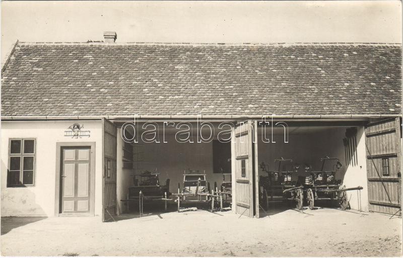 1911 Gádor, Gákova, Gakovo; Szövetségi Önkéntes Tűzoltók Társaság garázsa, tűzoltókocsik / garage of the Federal Volunteer Firefighters Association, fire carts. photo